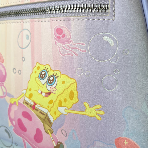 It can be used a little more subtly as well, as seen in the bubbles on in the SpongeBob SquarePants Jelly Fishing Mini Backpack. The debossed outline is also filled with a holographic foil making the bubbles really pop.
